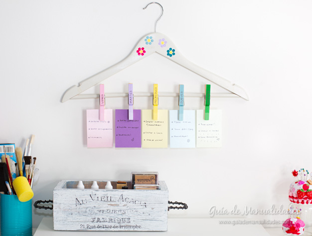 No sé si a much@s de ustedes les ocurre lo mismo que a mi. Durante la semana tengo miles de cosas por hacer y, a pesar de tener mi agenda y un calendario de escritorio, siempre estoy olvidando alguna cosa. Tengo dos espacios para trabajar y no siempre puedo llevar todo de un lado a… Seguir leyendo Organizador semanal con pinzas para la ropa