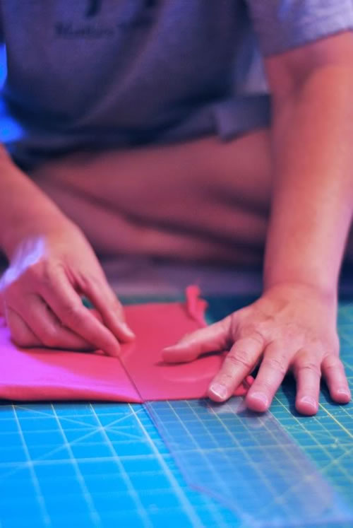 Deben cortar el borde del vuelo de alguna camiseta. Con él podrán hacer en poco pasos la flor.