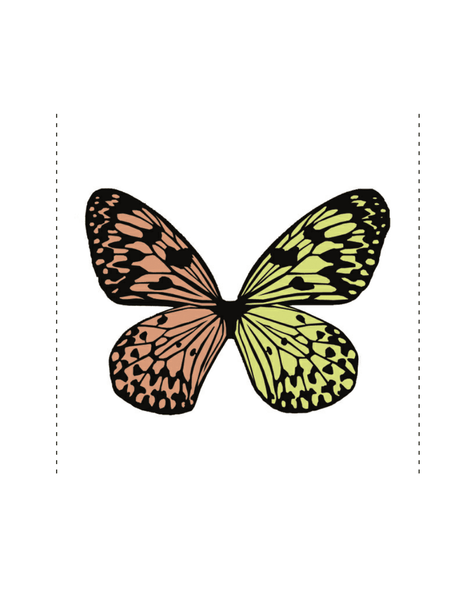 Para comenzar debes imprimir la plantilla de mariposa. Colocas la plantilla sobre la cartulina y para que no se mueva sujeta con cinta adhesiva.