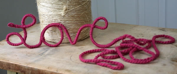 Con la palabra moldeada a gusto, sólo resta que comiences a forrarla con el cordón, lana o lo que hayas elegido. Es bueno usar un color brillante ya que llamará más la atención.