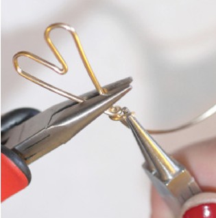 Enroscaremos el extremo corto del alambre que habíamos dejado a un lado de las jorobas y lo enrollaremos sobre el otro extremo del alambre, al otro lado de las jorobas. Ya tendremos formado el corazón.