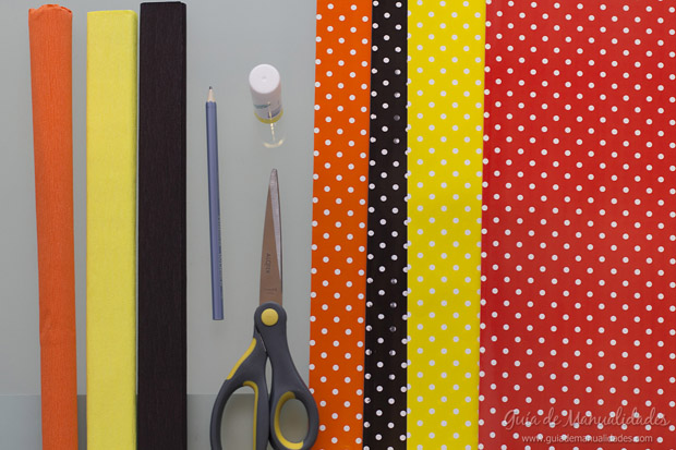 Por otro lado, cortamos las tiras de papel crepé y marcamos en el papel elegido el patrón del diseño que será el centro.