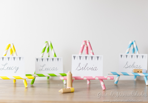 Esta es una de esas ideas que nos vendrá de maravillas en cualquier ocasión. Puede sacarnos de un apuro, de esos en lo que no encontramos más de una vez cuando tenemos una fiesta o reunión especial y tiempo es lo que nos falta para dedicarnos a la decoración. ¿Quién no tiene sorbetes en casa? Y si no tienen, son tan sencillos de conseguir… Si a ellos suman unas tijeras y pegamento tendrán todo lo que necesitan para hacer esta idea… Si! Vieron qué fácil pueden ser! Vamos que les mostraré paso a paso cómo hacer estos identificadores de fiesta y darle ese detalle original a la mesa en minutos…
