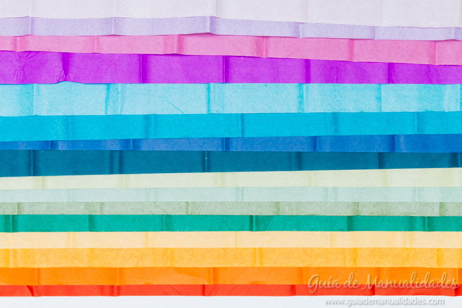 Luego, presentamos todos los papeles tissue o seda que tenemos y armamos combinaciones de colores. Es bueno armar combinaciones de 4 colores para hacer estas linternas.