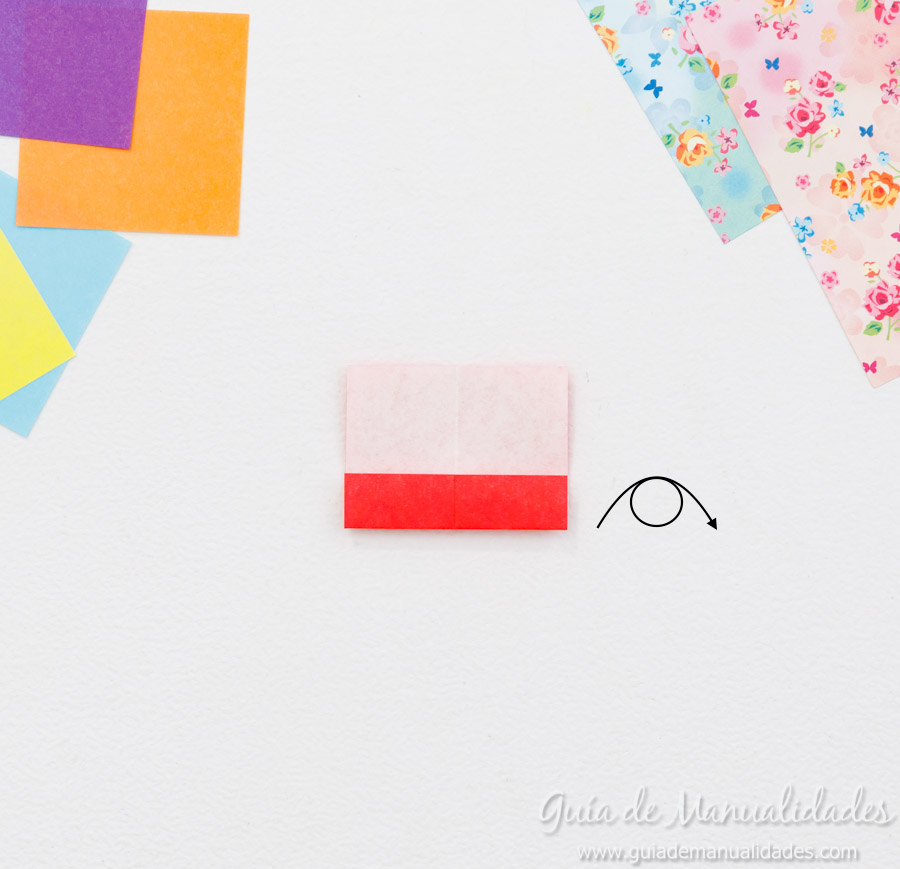 Colocamos el color hacia abajo y plegamos en ambos sentidos.