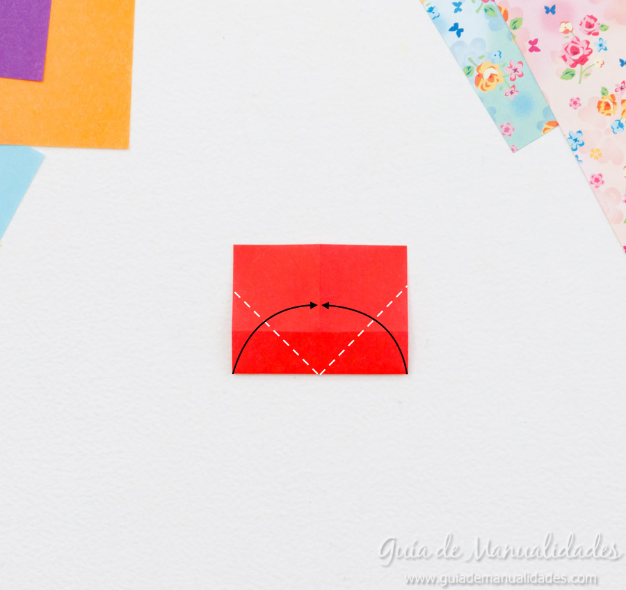 Plegamos las esquinas de abajo hacia el centro por las líneas punteadas.