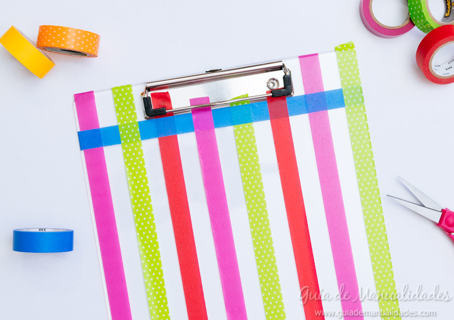 ¡Locura washi tapes para disfrutar de esta semana! Abres el cajón, ves todas esas washi tapes allí preciosas, ordenadas y ya sientes ganas de hacer un nuevo DIY con ellas. ¡Aquí está la idea que necesitas! Busca esa aburrida y sin vida carpeta (o también llamada tabla) acrílica con gancho que tienes guardada por ahí que hoy la vamos a transformar sólo con WASHI TAPES ¡Si! Sólo un material para lograr un cambio así de lindo ¿Se animan? ¡Verán qué fácil es!