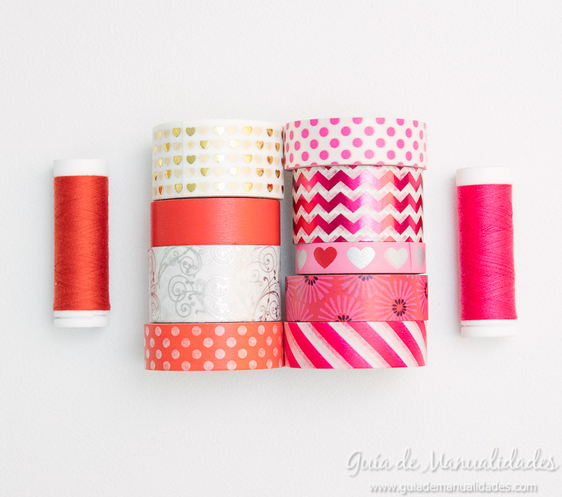 - Washi tapes de colores y diseños románticos (colores rojo, rosa, blanco, dorado, plateado, etc.)