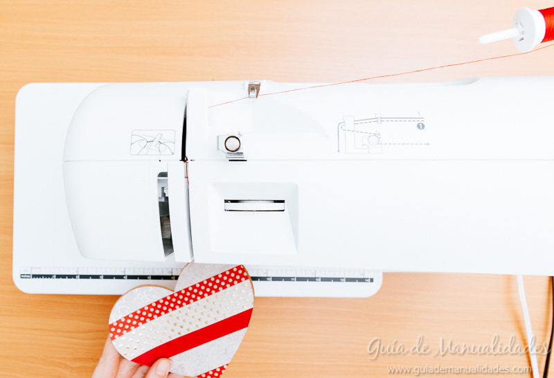 ¡A coser! Preparamos nuestra máquina de coser (y para los que siempre me preguntan… la mía es la Brother CE5500) con el hilo de color elegido. Punto común y pie indicado (también pueden coserlos con punto zigzag). Colocamos un corazón sobre otro y podemos sostenerlos con unos clips para tela. Debemos coser todo alrededor, dejando unos centímetros sin cerrar. Y teniendo en cuenta hacerlo unos milímetros hacia adentro del corazón. Damos toda la vuelta y retiramos de la máquina de coser.