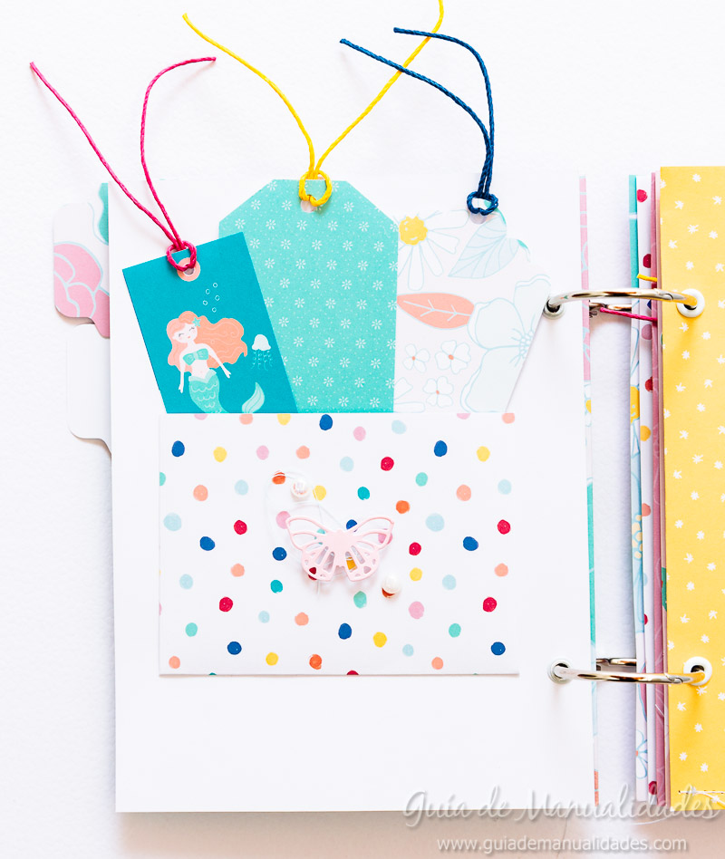 También verán etiquetas y frases especiales en los mini sobres, en las hojas interiores de los sobres principales. Muchos detalles y sorpresitas que acompañarán a todas las fotos y recuerdos que su dueña añadirá al mini álbum.