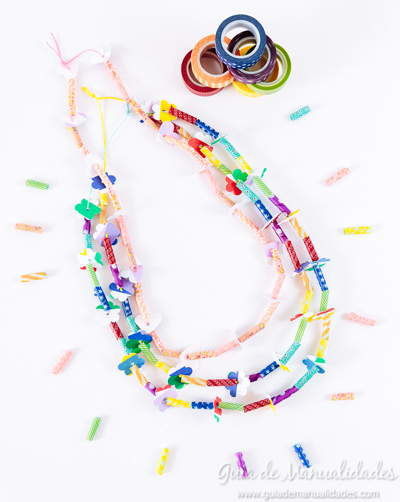 ¡Detallazo para la próxima fiesta o cumpleaños en casa y si es de los peques mucho más! Les muestro cómo hacer estos originales, divertidos y fáciles colgantes o collares usando sólo unas cintas washi, sorbetes e hilo encerado. Un hermoso DIY que hasta pueden hacer con los más pequeños y en toda la gama de colores que colores que quieran.