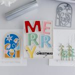 - Die-cut the frame: cut the “Merry Cover” once from white cardstock for the top layer.