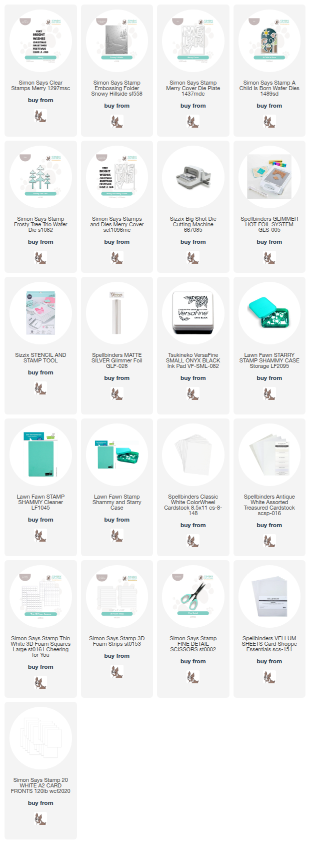 Pssst—giveaway time! Leave a comment on this post to enter; Simon Says Stamp will choose a winner from my comment section to receive a $25 coupon. All winners from every hop stop will be announced on the Simon Says Stamp blog on Wednesday, November 12. And there’s a bonus: our blog-hop exclusive gift with purchase—the not-yet-released 3″×4″ Christmas Candle stamp set—will be automatically added to any order that includes items from the And Everything Nice collection. Hurry, the GWP ends 11/9 at 11:59 pm EST or while supplies last.