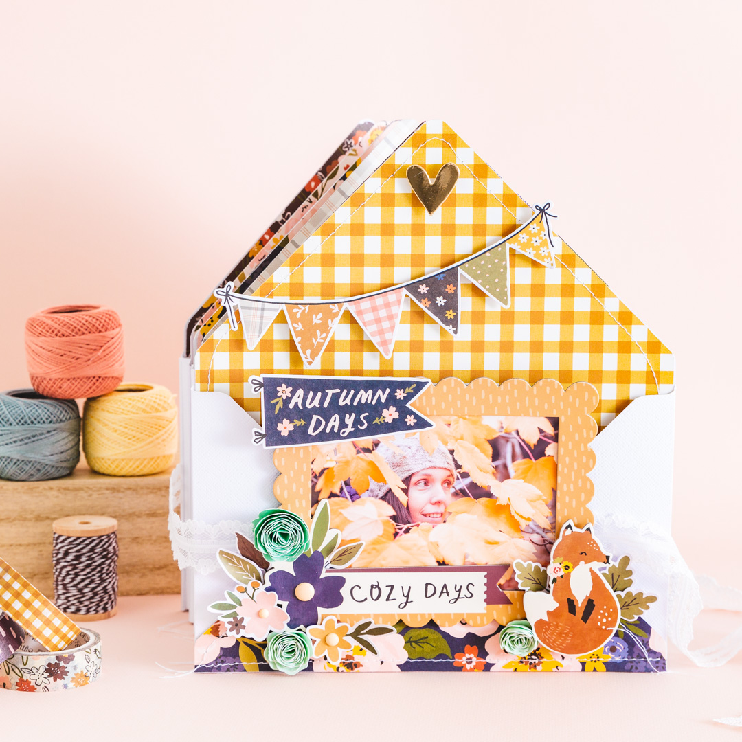 «Cozy Days» es una colección de SIMPLE STORIES donde el otoño, sus colores e inspiración están en cada detalle. La idea era hacer algo original, distinto y divertido a la vez para documentar esos momentos maravillosos que podemos vivir en la naturaleza en esta época del año. Así fue como una combinación de sobres y una espina especial dieron vida a este mini album. En su interior hay diversas estructuras desplegables y también pequeños cuadernos DIY.