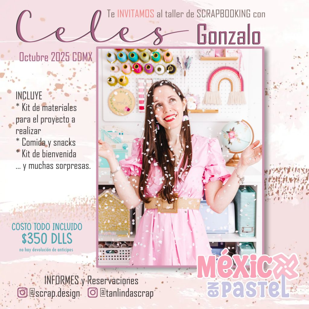 ¡Primera vez en México! Y lo escribo con toda la emoción. Vamos a compartir la tercera edición de “MEXICO EN PASTEL” el día 18 de Octubre de 2025 organizado por las tiendas Tan Linda Scrap y Scrap.Design. Será un evento muy pastel y lleno de creatividad + diversión. Vamos a disfrutar, compartir y crear juntas ¡te espero!
